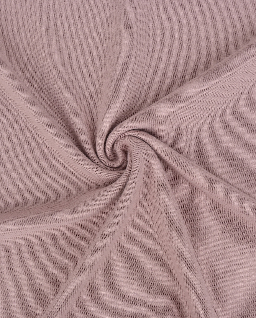 Tejido de punto jersey suave, con textura flexible y elástica – perfecto para confeccionar ropa cómoda como camisetas, vestidos y ropa de bebé.