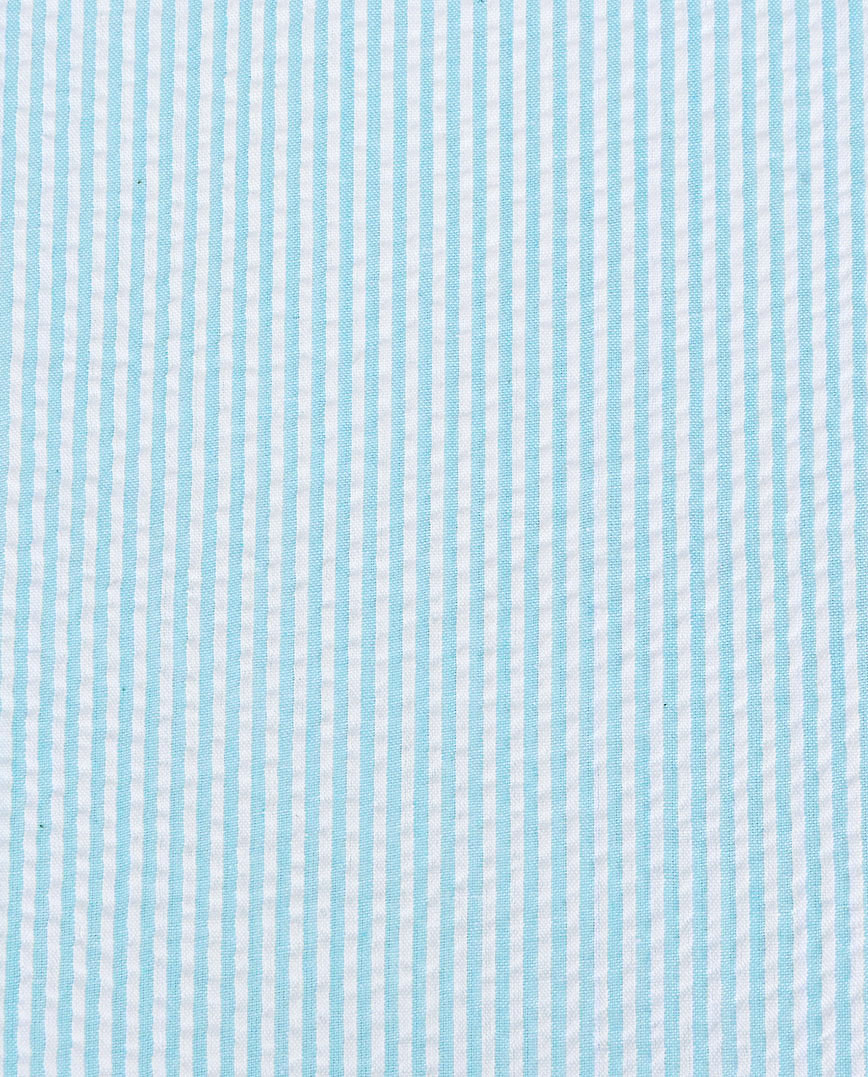 Seersucker es un tejido de algodón con efecto fruncido. Este aspecto fruncido se crea utilizando hilos largos y cortos. Hoy en día, el tejido también se fabrica con una mezcla de algodón y poliéster. Este tejido es ideal para climas más cálidos por su ligereza y porque resulta transpirable y fresco sobre la piel. Entre otras cosas, puede utilizarse para distintos tipos de prendas, como camisas, americanas, chaquetas y vestidos.